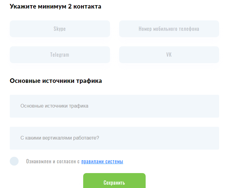 Для того чтобы подключится к офферу и начать работать с Saleads, необходимо создать площадку. Для этого: