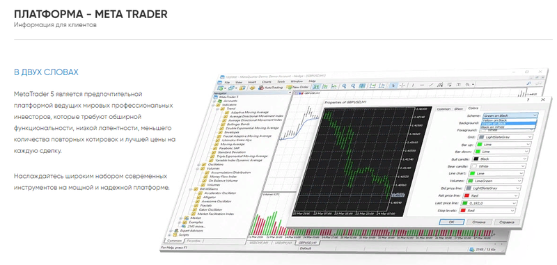 Торговать с брокером трейдерам предстоит на платформе MetaTrader 5 версии. Терминал разработали MetaQuotes.