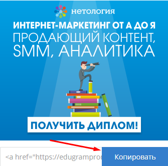 Также предлагаются в Edugram: реф. ссылки, кнопки и виджеты, списки ключевиков, iframe формы и т.д.